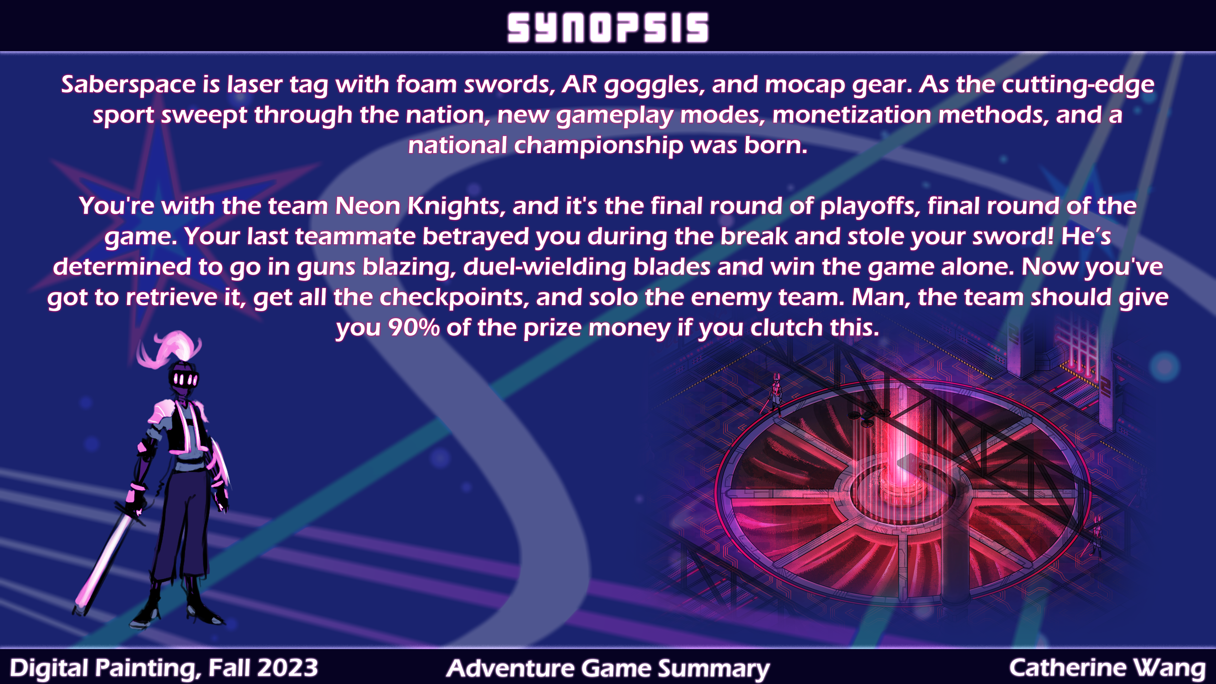 My sophmore top-down adventure game, about a last-girl-standing in an AR sport competition.